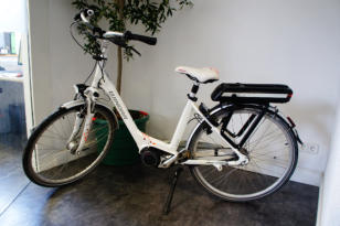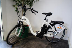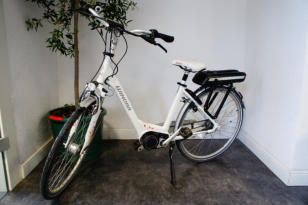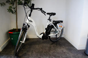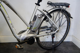 28 ‘‘ (weiß) & 26 ‘‘ (schwarz) Trapez-Rahmen-Ausführung7-Gang-Naben-SchaltungHydraulische FelgenbremseBosch Mittelmotor mit Akku-Leistung 400Whelektrische Unterstützung bis 25 km/hTiefeinsteigermodell mit RücktrittbremeVHB 999 Euro